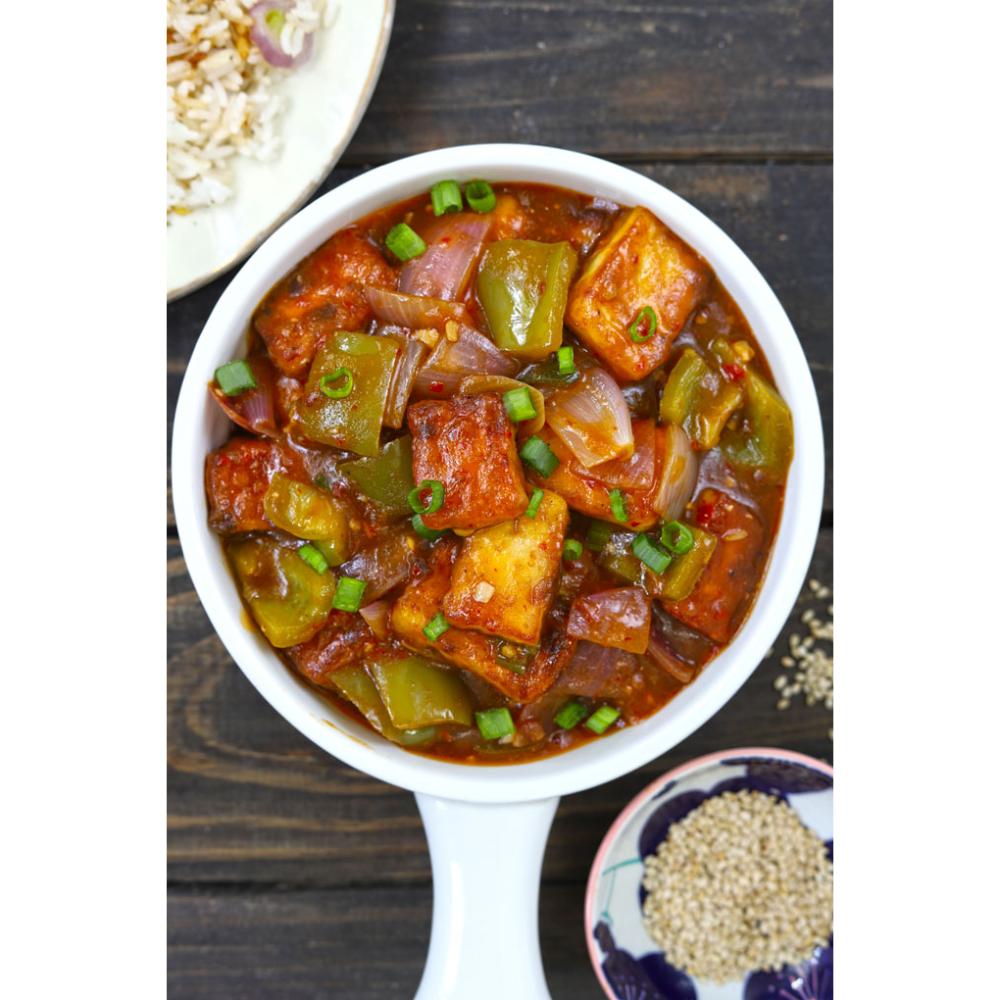 Spicy garlicky Cottage Cheese, Desi Chinese.